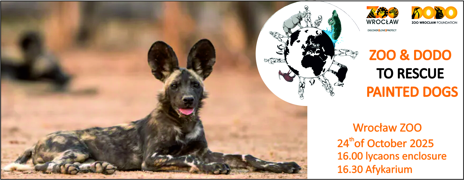 At 4:30 PM, in the auditorium of the Afrykarium at the Wrocław Zoo, there will be a presentation by Painted Dog keeper Adrianna Pawłowska, discussing the biology of this species and the conservation program run by Painted Dog Conservation in Zimbabwe.